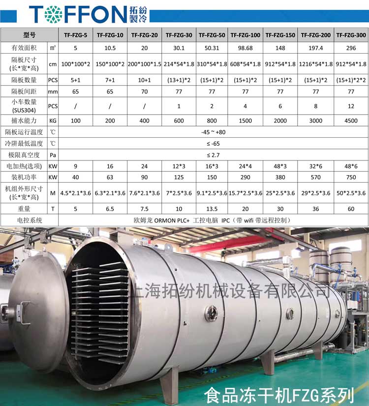 上海拓紛廠家食品級生產型凍干機型號TF-FZG-5(5平方米
