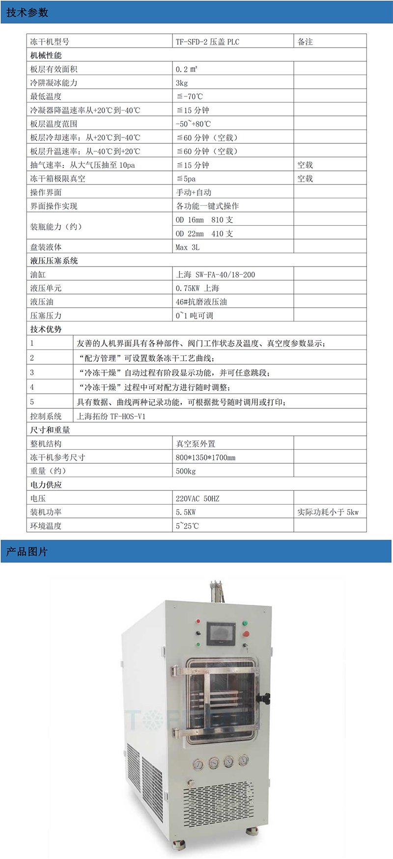 壓蓋型真空冷凍干燥機TF-SFD-10此款真空冷凍干燥機是上
