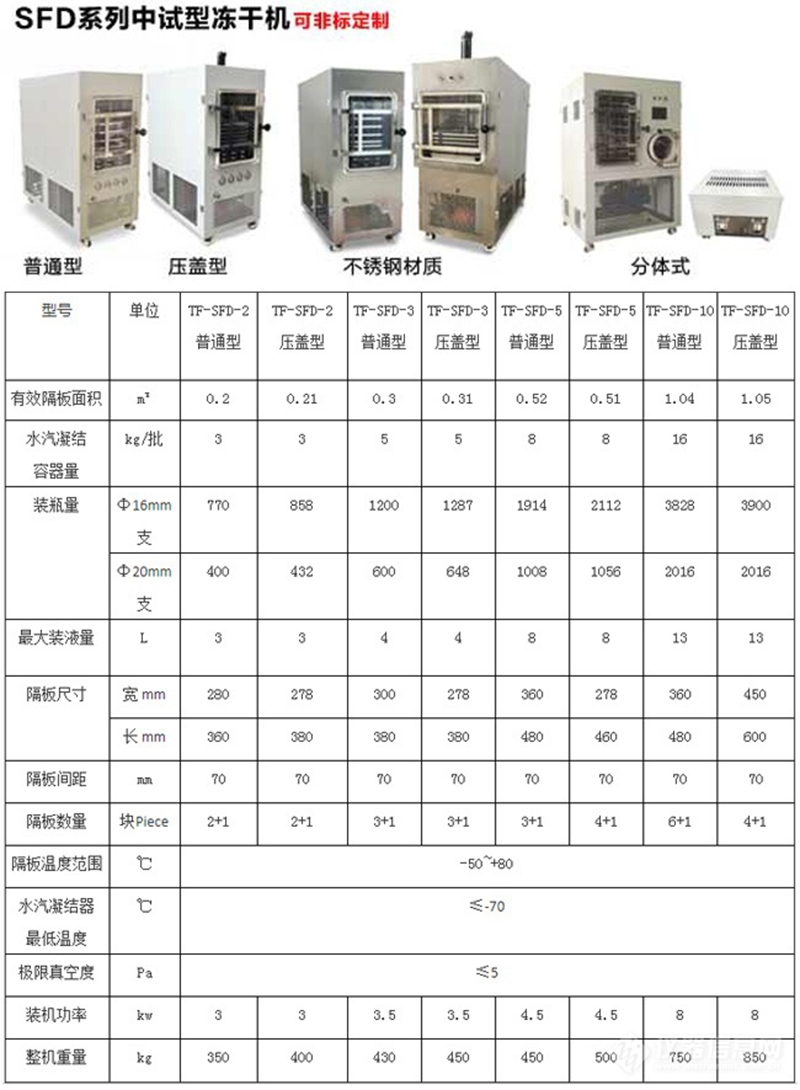 壓蓋型真空冷凍干燥機(jī)TF-SFD-10此款真空冷凍干燥機(jī)是上
